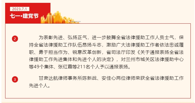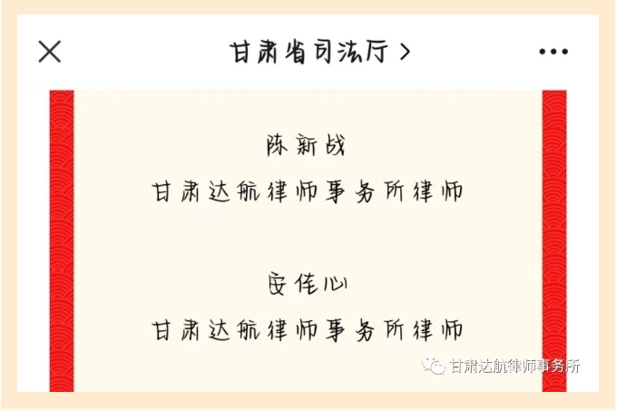 达航荣誉|祝贺甘肃达航律师事务所陈新战、安佳心两位律师荣获“全省法律援助工作先进个人”