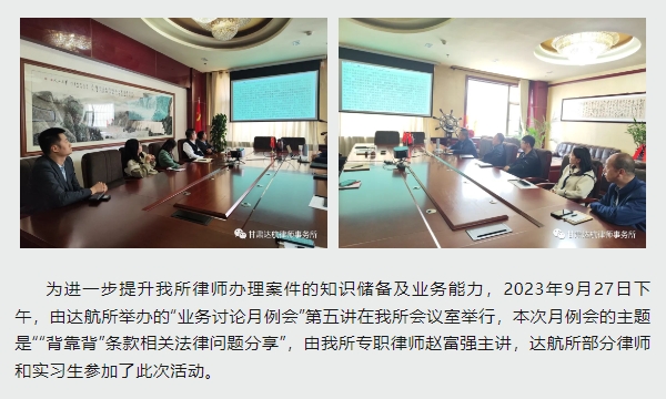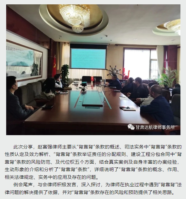 达航资讯|达航律所“业务讨论月例会”第五讲--““背靠背”条款相关法律问题分享”